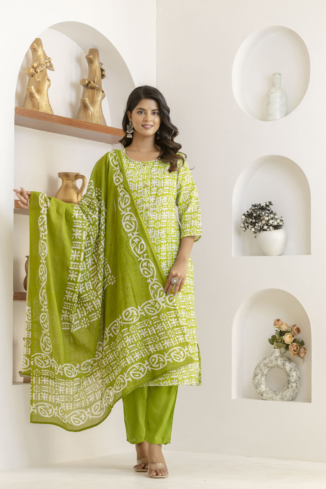 Radiating warmth and understated charm, the Abeer Chanderi Suit Set is designed for moments that call for graceful celebration. Crafted in a luminous fabric with a delicate sheen, this ensemble embodies refined simplicity while honoring traditional aesthetics.