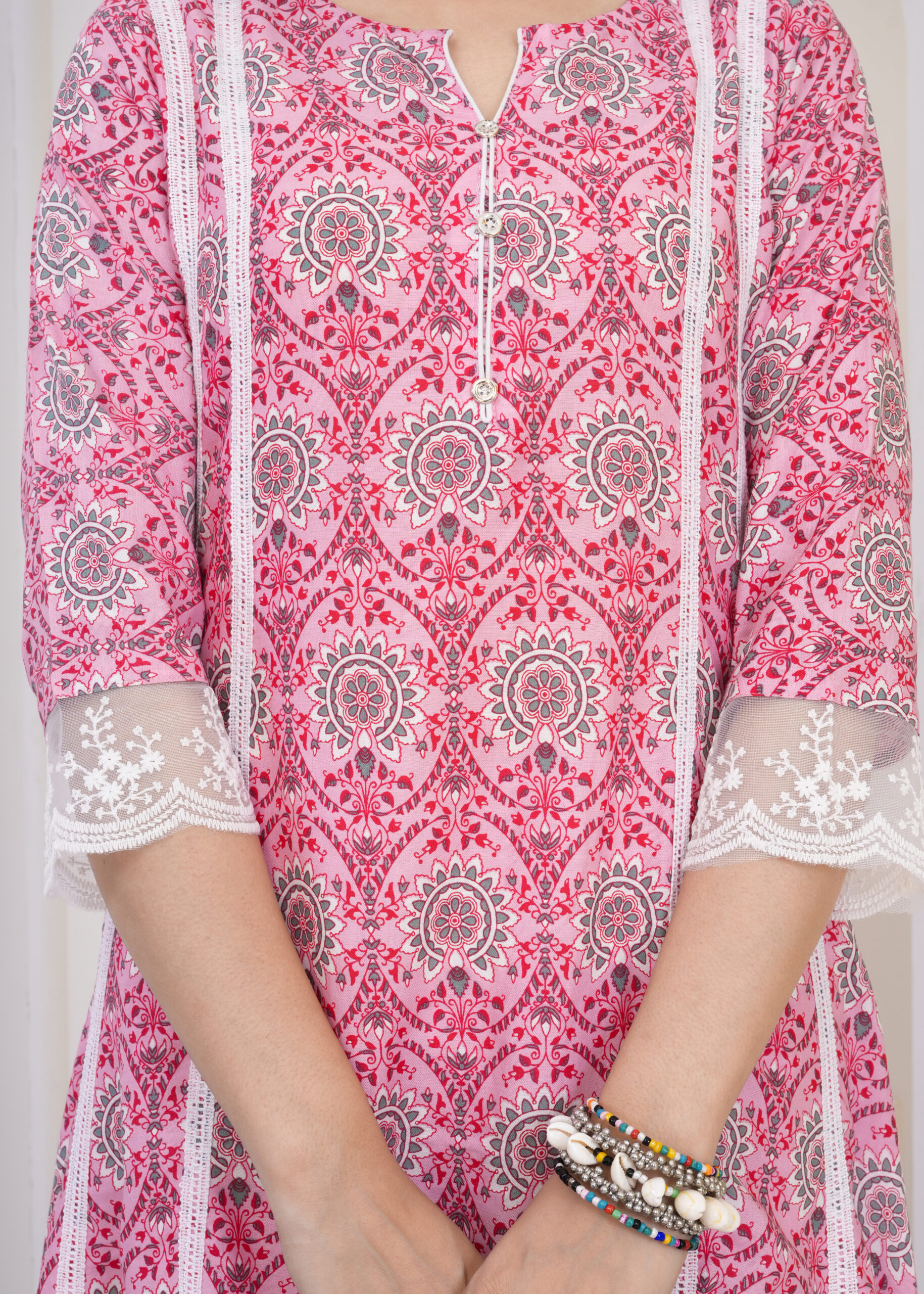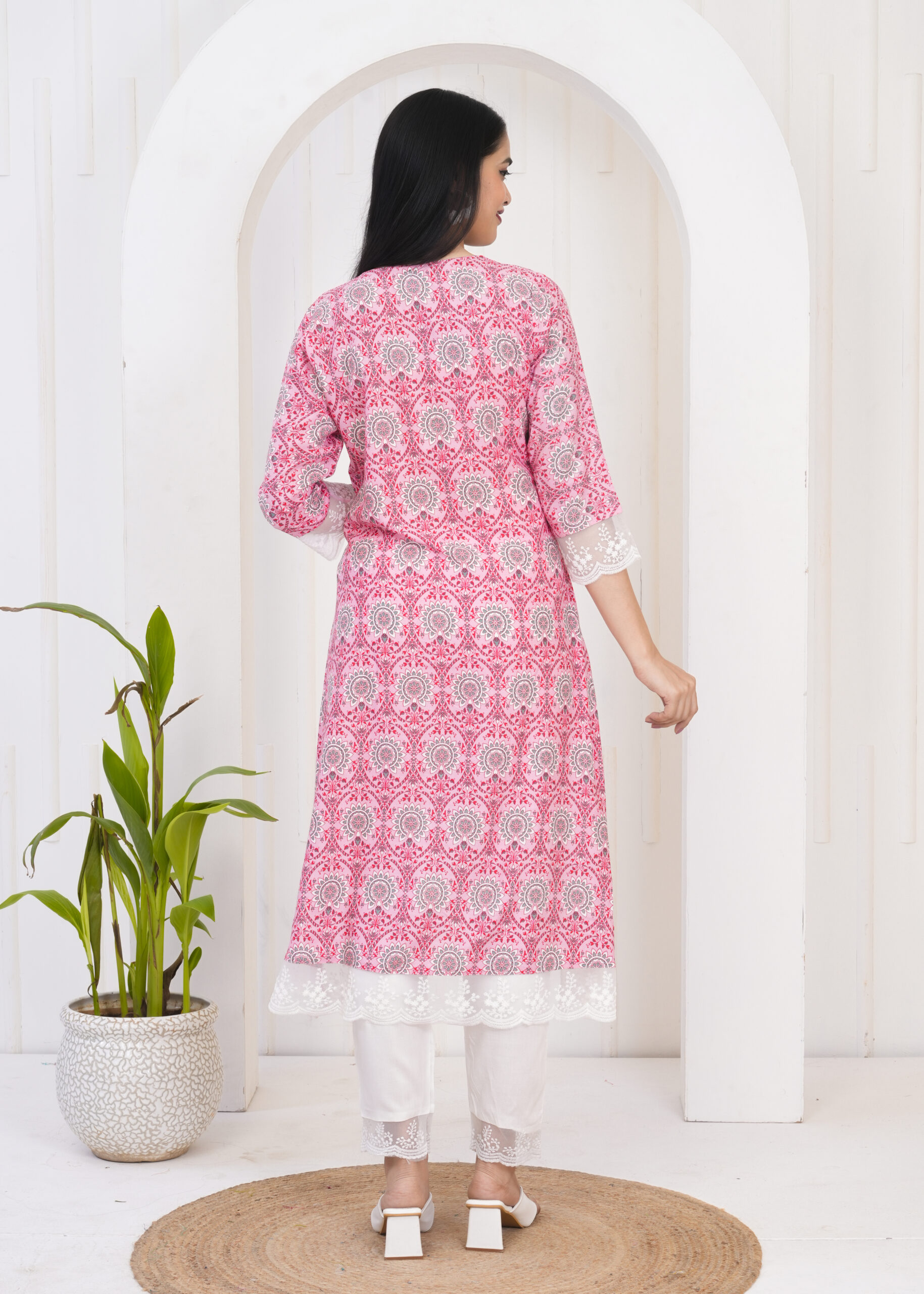 The soft pink tone combined with delicate patterns makes this set perfect for daily wear, office styling, and casual festive moments. Comfortable yet refined, it’s an effortless choice for women who love understated elegance.