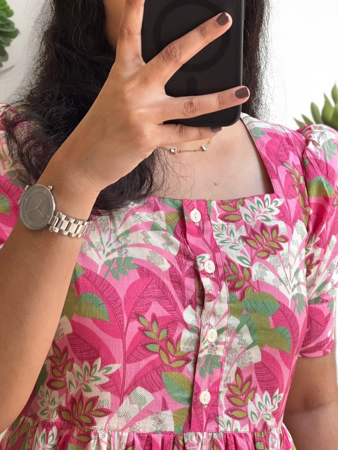 A charming midi dress in a vibrant pink floral print, designed to bring freshness and effortless grace to your everyday wardrobe. Featuring a flattering round neckline, short sleeves, and a softly gathered tiered silhouette, this dress blends comfort with playful elegance. The lively floral pattern adds a cheerful touch, making it perfect for sunny days and relaxed outings.